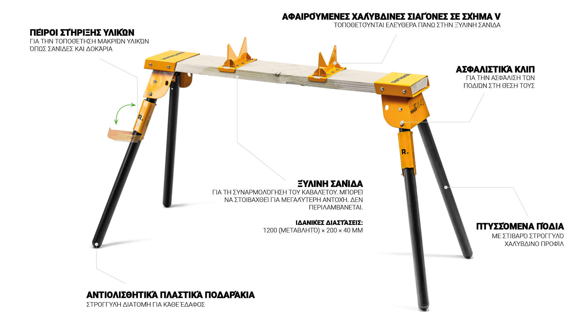 Σχεδιασμένο για βαριά χρήση – αντέχει έως 150 κιλά υλικού, για να τοποθετείτε ακόμα και ογκώδεις κορμούς. Παραμένει όμως σχετικά ελαφρύ, μόλις 10 κιλά, ώστε να μεταφέρεται εύκολα όπου χρειάζεται. Έτοιμο για χρήση σε δευτερόλεπτα, αποσυναρμολογείται πλήρως για μέγιστη εξοικονόμηση χώρου κατά την αποθήκευση ή μεταφορά. Κόβετε με ακρίβεια και ασφάλεια, με ελάχιστη προσπάθεια. Μπορείτε να το ενισχύσετε τοποθετώντας περισσότερες σανίδες ή να επεκτείνετε το μήκος με μεγαλύτερη ξύλινη βάση.