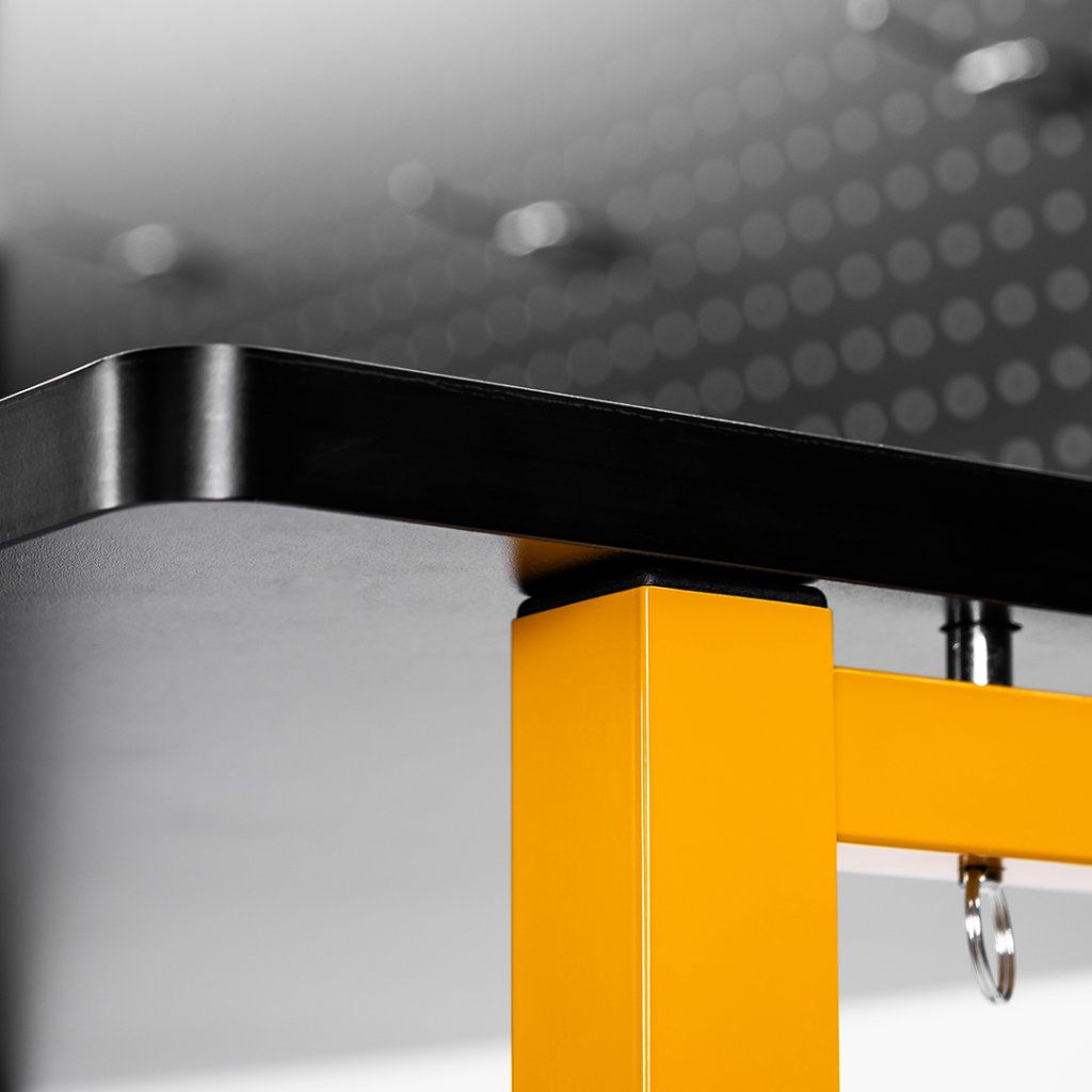 Ο Πάγκος Εργασίας T500 είναι σχολαστικά σχεδιασμένος για να βελτιώνει την αποδοτικότητα τόσο για επαγγελματίες όσο και για λάτρεις του DIY σε οποιοδήποτε περιβάλλον συνεργείου. Ο στιβαρός του ατσάλινος σκελετός και η ανθεκτική επιφάνεια από MDF είναι κατασκευασμένα να αντέχουν βαριά φορτία, εξασφαλίζοντας αξιοπιστία για απαιτητικές εργασίες. Παρακαλούμε τηρήστε τη μέγιστη ικανότητα φόρτωσης των 100 κιλών για βέλτιστη απόδοση και ασφάλεια.