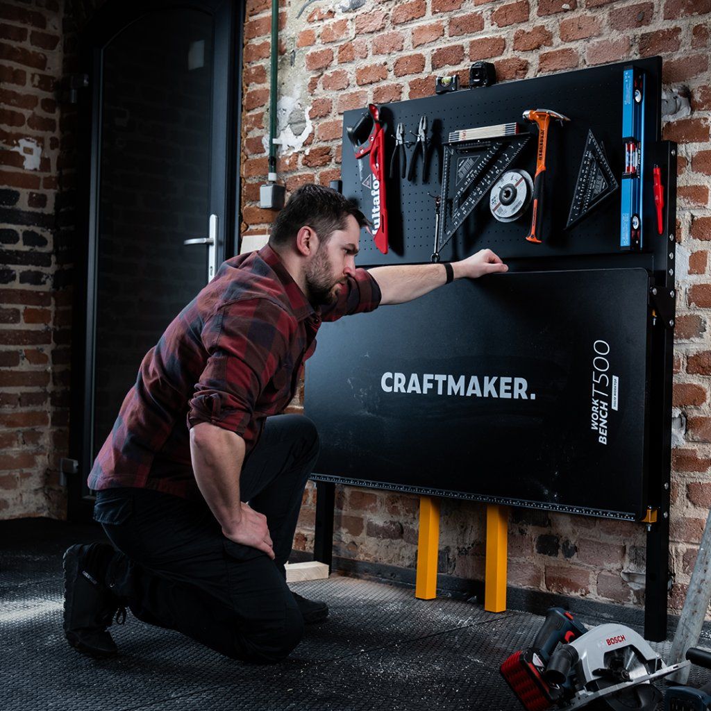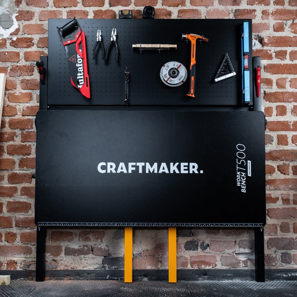 Μεγιστοποιήστε τον χώρο εργασίας σας με τον CRAFTMAKER T500 αναδιπλούμενο πάγκο εργασίας συνεργείου, μελετημένα σχεδιασμένο με στιβαρό ατσάλινο σκελετό, ανθεκτική επιφάνεια από laminate MDF και ενσωματωμένο διάτρητο μεταλλικό πάνελ (πεγκμπόρντ) για οργανωμένη αποθήκευση εργαλείων. Ο καινοτόμος αναδιπλούμενος σχεδιασμός του και το περιλαμβανόμενο σύστημα τοποθέτησης στον τοίχο εξασφαλίζουν αποτελεσματική αξιοποίηση του χώρου.