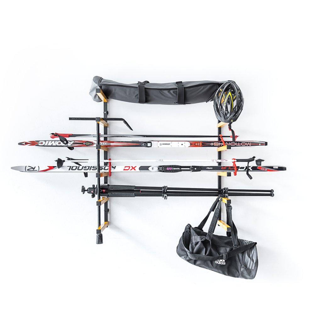 Το σύστημα σχαρών και ραφιών πολλαπλών χρήσεων της STRONGBOLD® είναι κατάλληλο για την αποθήκευση αθλητικού εξοπλισμού στο γκαράζ σας καθώς και για την οργανωμένη αποθήκευση ξύλων, σωλήνων ή εργαλείων σε ένα επαγγελματικό εργαστήριο ξυλουργικής. Αξιοποιήστε πολύτιμο αποθηκευτικό χώρο και διασφαλίστε ότι τα υλικά σας θα είναι πάντοτε γρήγορα στη διάθεσή σας. Προσθέτοντας μια ξύλινη σανίδα σε κάθε επίπεδο, μπορείτε να δημιουργήσετε αποθηκευτικό χώρο για μικρότερα αντικείμενα, όπως τρυπάνια, πριόνια και άλλα εργαλεία. Ωστόσο, μην υπερβαίνετε τη συνιστώμενη δυνατότητα φορτίου των 50 kg ανά επίπεδο και το συνολικό μέγιστο φορτίο των 300 kg για ολόκληρο το σύστημα ανάρτησης. Οι βραχίονες συγκράτησης του συστήματος σχαρών αποθήκευσης κλίνουν ελαφρώς προς τον τοίχο για να αποφεύγεται η πτώση των υλικών εργασίας.